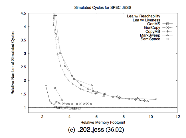 The Y axis is time spent collecting garbage. The X axis is the memory footprint relative to the minimum amount of memory required. What it says is that if you have less than twice the amount of required memory, you begin to see an exponential degradation in performance. For more details I would refer the reader to Drew Crawford's article Why mobile web apps are slow. In it he discusses why garbage collected languages are at a big disadvantage in Mobile apps and why Apple have deprecated garbage collection for iOS development in favor of ARC memory management. It's quite a long article so you may wish to skip down to the relevant section "GC on mobile is not the same animal as GC on the desktop".