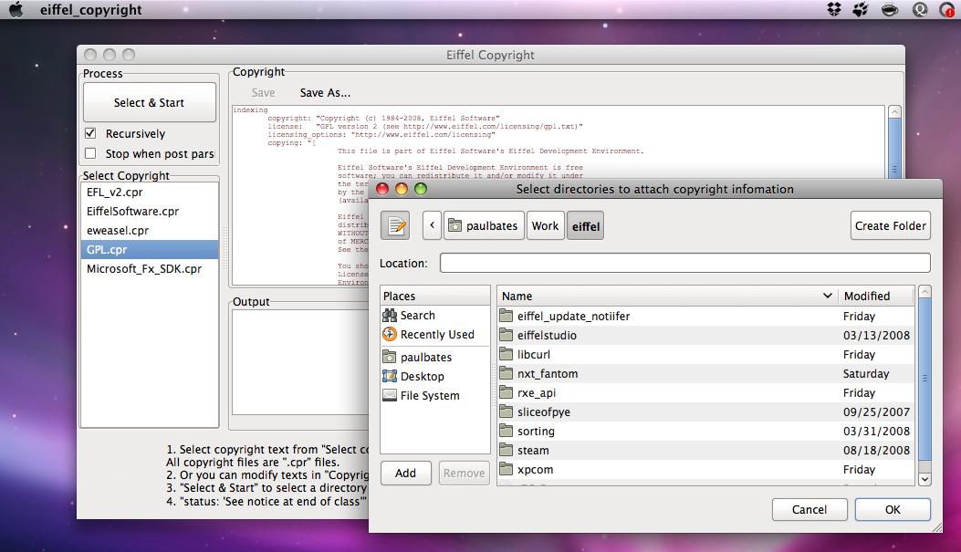 Mac fanatics out there might have heard that there is native implementation of GTK running on MacOSX. There's been a bit of backlash against the port because it doesn't provide a native MacOSX look and feel, but we are assured that they are working on it. So what does this mean for Eiffel and EiffelVision2 applications? Quite a bit, hasta luego X11.
